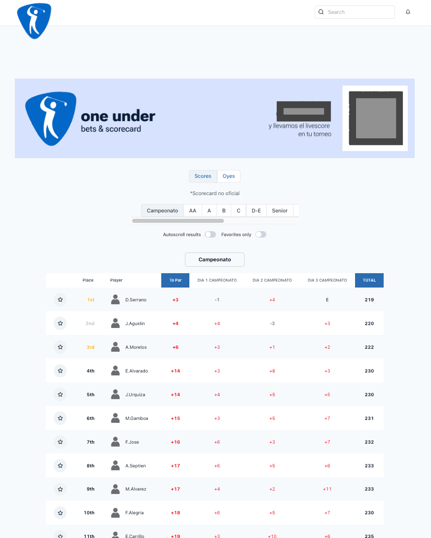 There are several types of tournaments that can be configured through the dashboard, and the live score can be viewed in real time on the websites below.