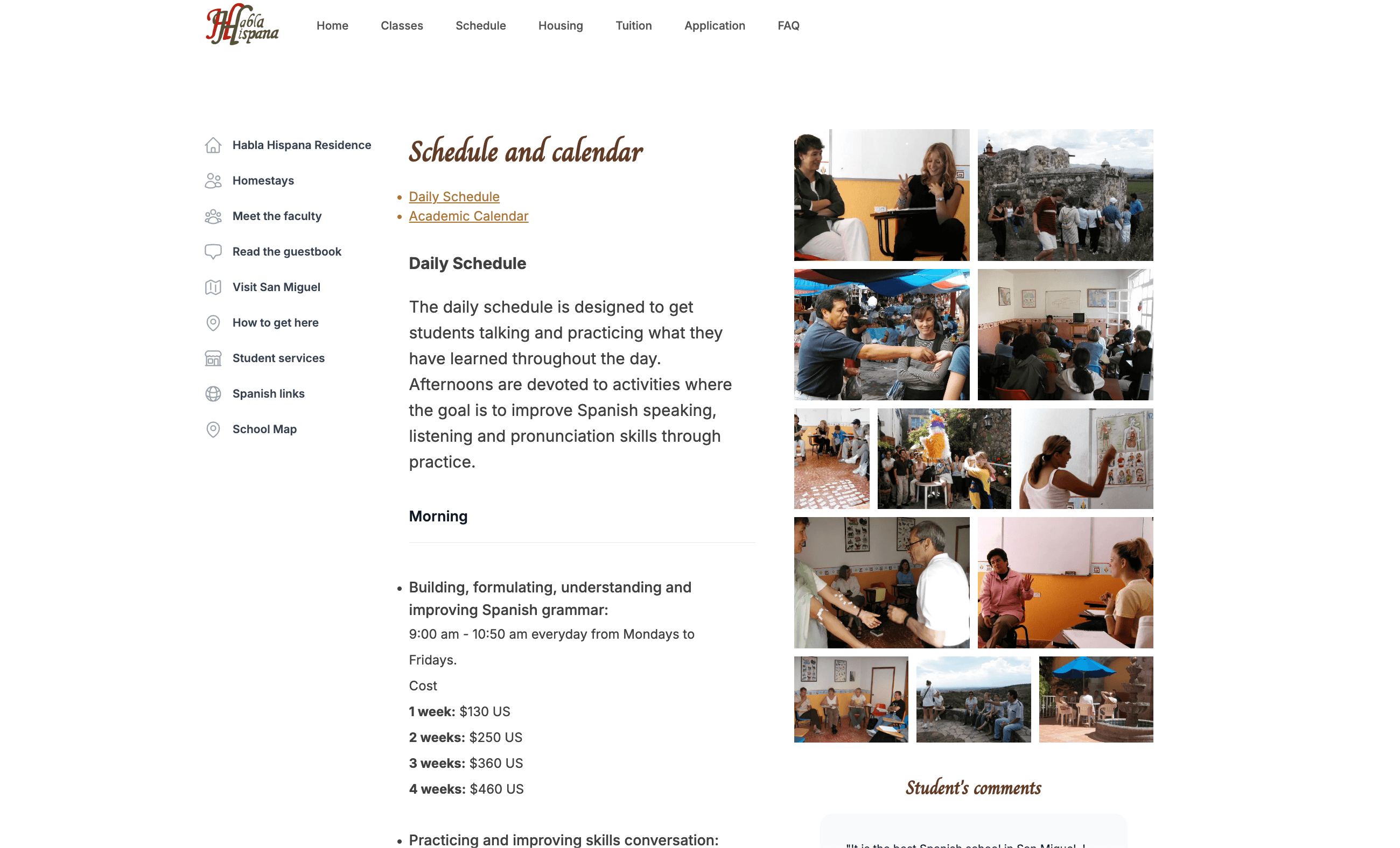 Spanish School's website